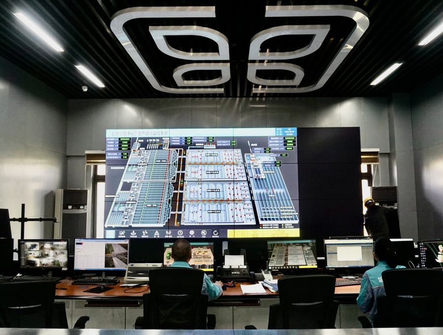 在虹桥污水处理厂的中控室内,工作人员通过生产运行监控系统密切监测各项数据